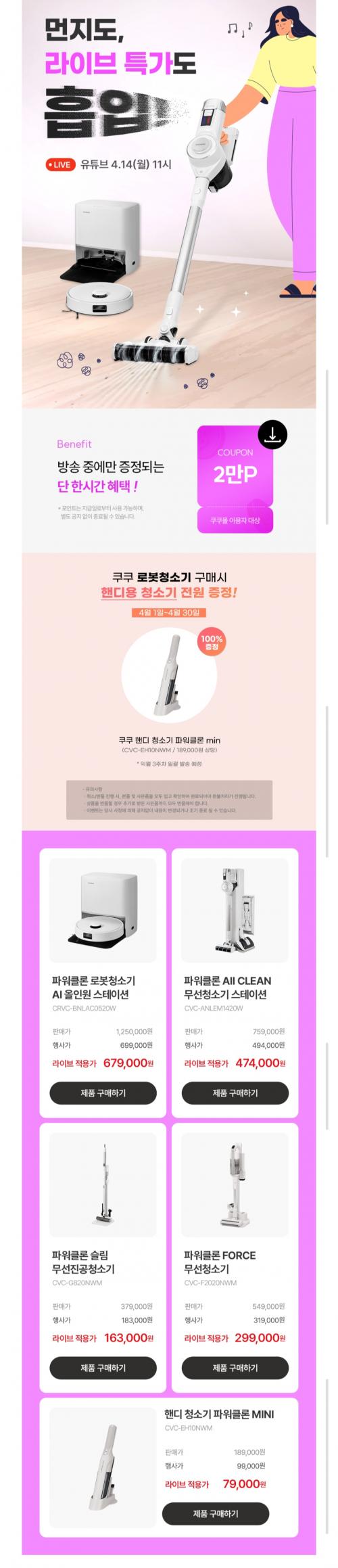 쿠쿠 파워클론 무선청소기 라이브 특가 적용하면 474,000원 나옵니다