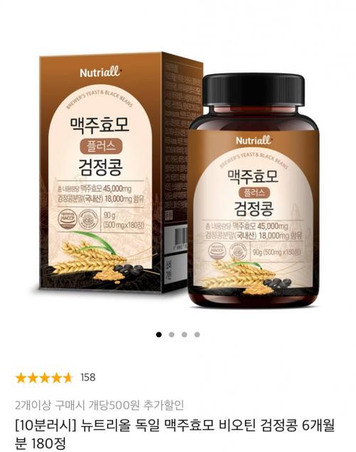 6개월분 180정 이고 맥주효모 45,000mg + 검정콩분말 18,000mg 함유