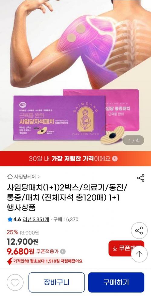 동전파스처럼 근육통에 사용하는 자석패치입니다