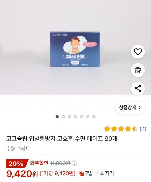 수면중 입호흡 하시는 분들은 필수템이네요 가격도 타 제품 대비 저렴합니다