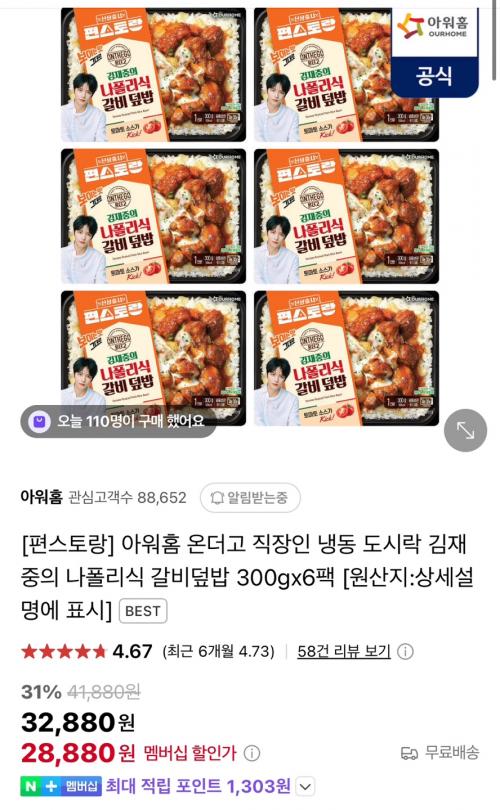 갈비덮밥 300g 6입 일반기준 32,880원