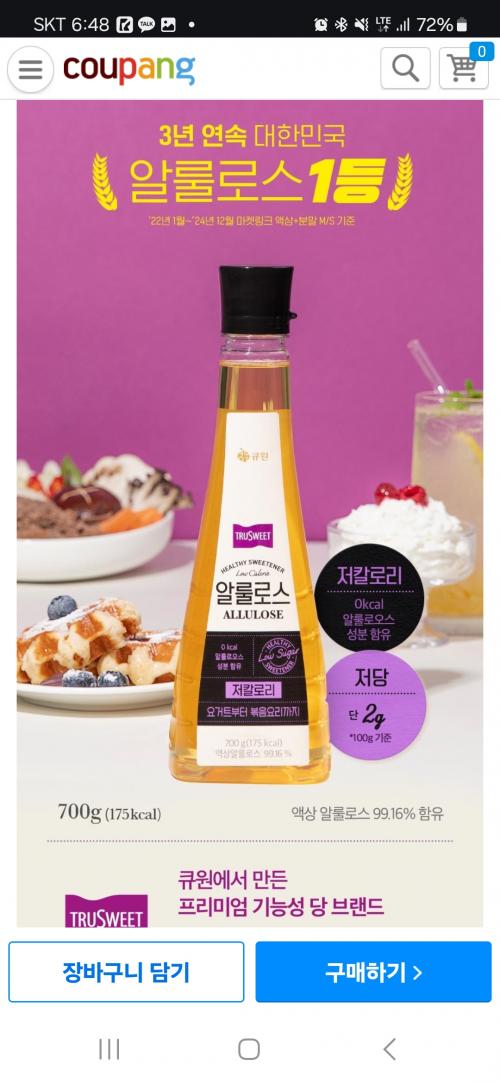 요즘 설탕 안쓰고 알룰로스 쓰는데 가격 괜찮네요.