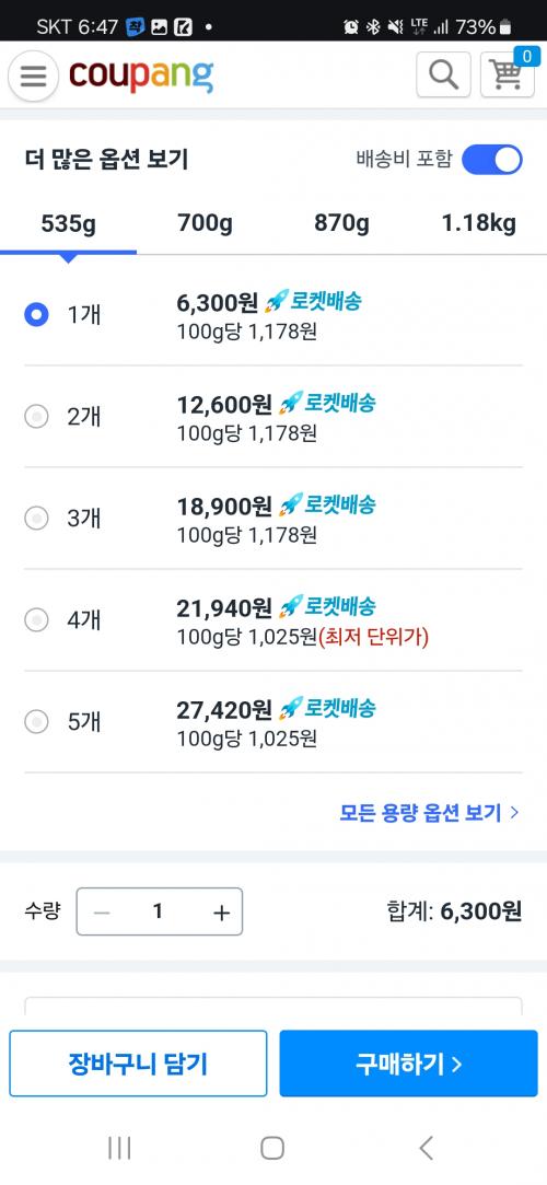 535g짜리가 더 큰 사이즈보다 100g 당 가격이 더 쌉니다~