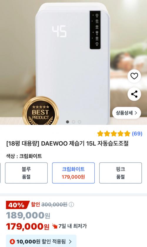 [쿠팡] DAEWOO 제습기 15L 자동습도조절 (179,000원/무배) > 국내핫딜
