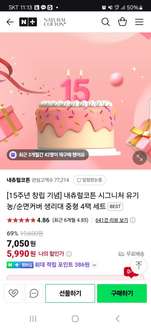 내츄럴코튼 15주년 이벤트하는데 가격 괜찮네요.