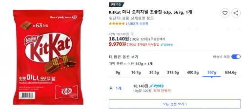 [쿠팡] KitKat 미니 오리지널 초콜릿 63p, 567g, 1개 (9,970/무료)
