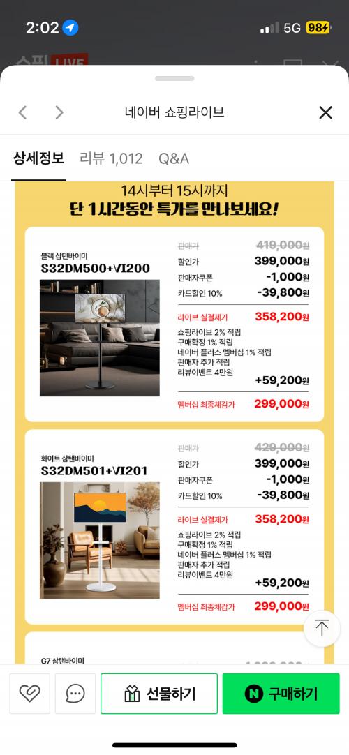 [네이버] 삼성 삼탠바이미 M5 80.1cm 스마트 M50D 화이트에디션+전용스탠드 2in1 거치대(299,000원/무료)