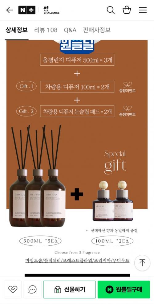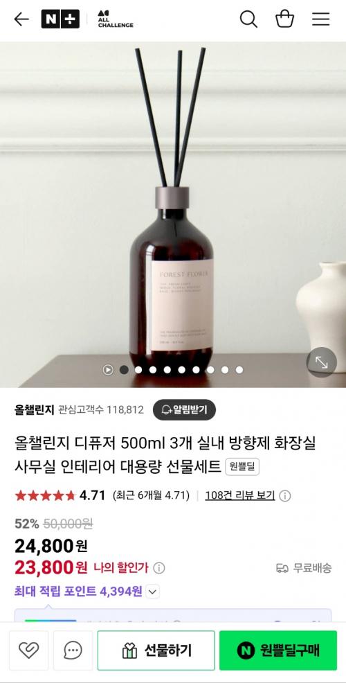[네이버] [단품구성] 올챌린지 대용량 디퓨저 500ml 3개 (23,800원/무료) > 국내핫딜
