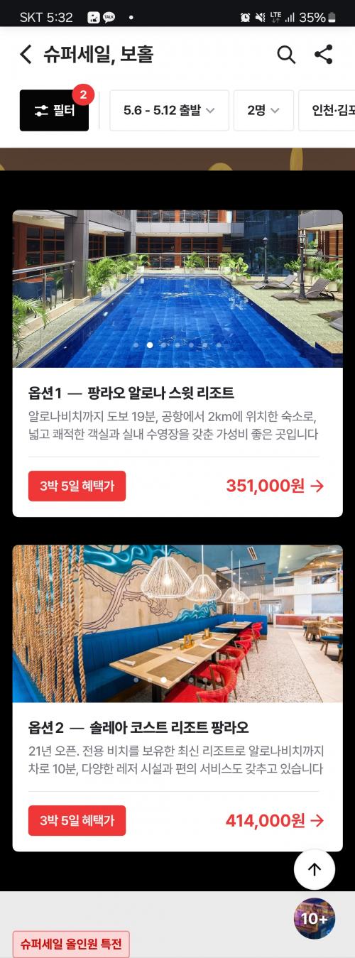 호핑투어 포함 보홀 패키지 할인하는데 가격 괜찮네요.