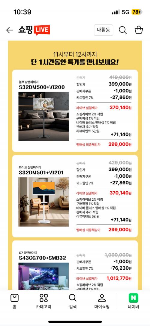 라이브가+리뷰+네이버 멤버십 등 혜택 받으면