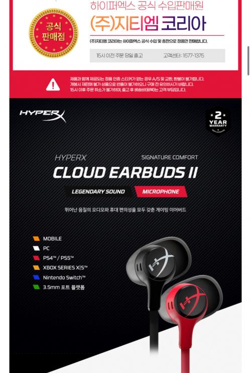 [네이버] 하이퍼엑스 클라우드 이어버즈2 블랙 게이밍 이어폰 (37,000원/무배)