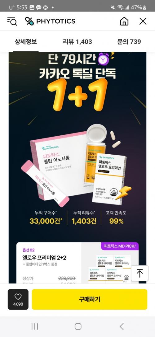 지금 톡딜로 가격 완전 좋으니까(1+1 29,900원, 2+2+종합비타민 53,900원)