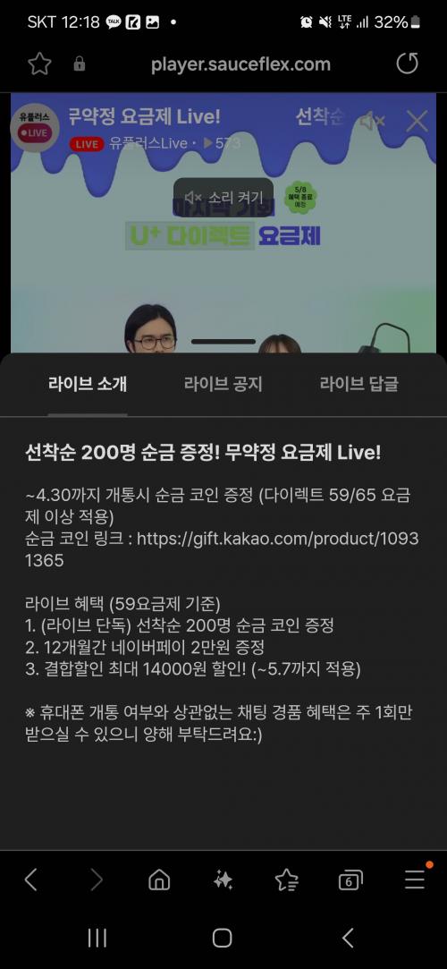 유플러스 다이렉트59 요금제 라이브 혜택 좋네요~