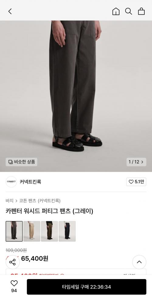 [무신사] 커넥트킨록 카펜터 워시드 퍼티그 팬츠 (65,400원/무료) > 국내핫딜