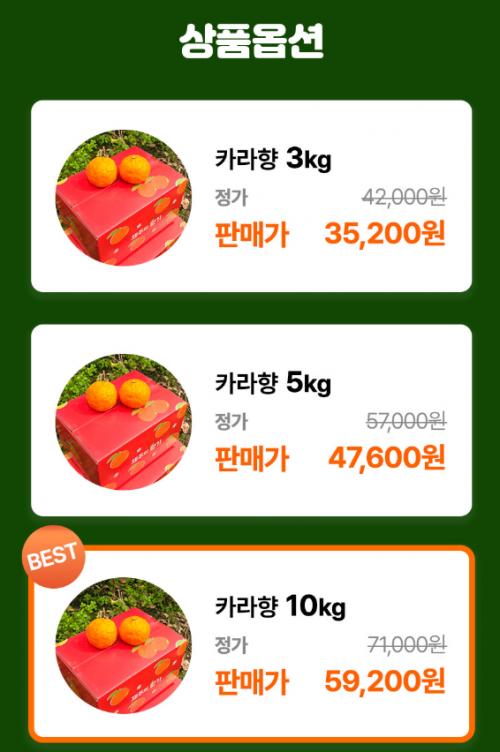 카라향 외 다른 과일류들이 시중가보다 1~2천원정도 저렴한듯합니다.