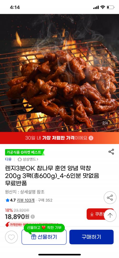 [지마켓] 렌지3분OK 참나무 훈연 양념 막창 200g 3팩(총600g) (18890원/무배) > 국내핫딜