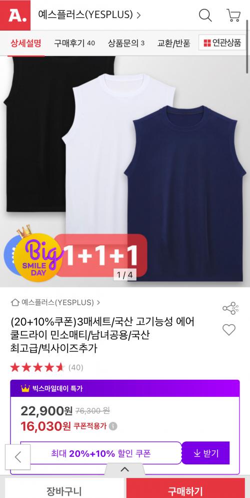 [옥션] 국산 에어쿨드라이 민소매티 3장세트 (16,030원 /무료) > 국내핫딜