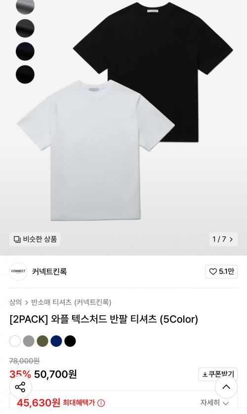 와플 반팔 티셔츠인데 1+1에 25,350원 타임세일 합니다.