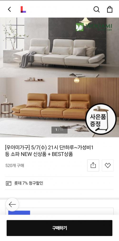 [롯데아이몰] 우아미가구 알레 3.5인용 스윙 가죽 소파 (554,590원/무료) > 국내핫딜