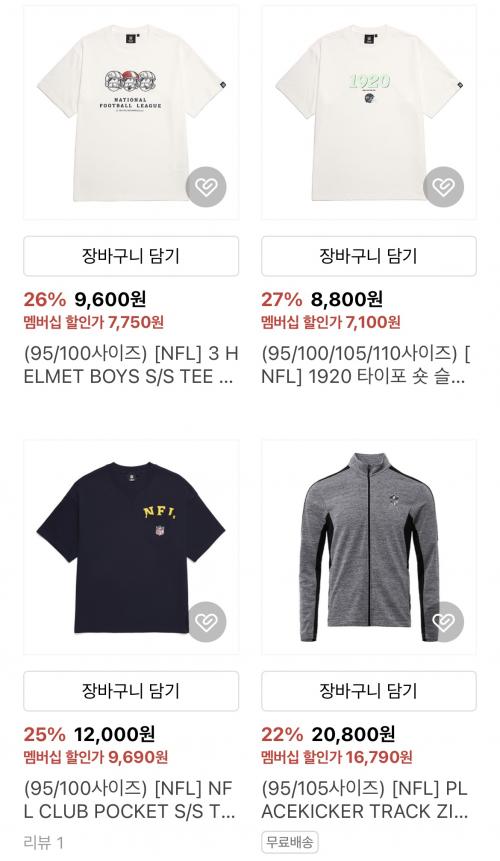NFL / 르까프 / 후아유 등 다양한 브랜드 있고