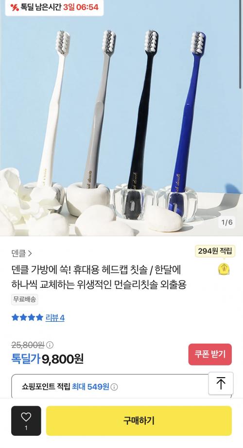 [카카오]덴클 휴대용 먼슬리 칫솔 12개입 (9,800원/무료) > 국내핫딜