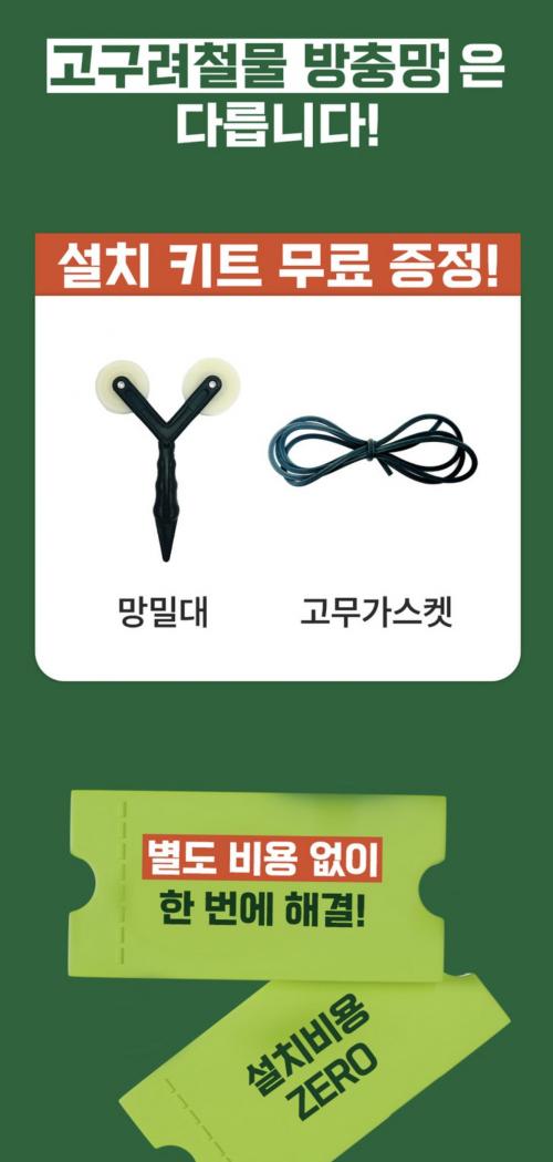 구성품으로 원단 + 밀대 + 고무가스켓 + 물구멍망(설치키트포함)