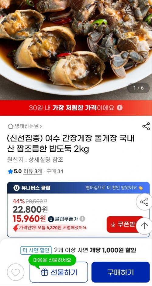 국내산 여수 간장게장 돌게장 할인 행사 중입니다.