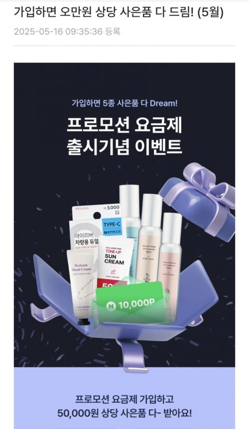 신청하면 네이버페이 10,000포인트+선크림+핸드크림+룸스프레이+차량용충전기