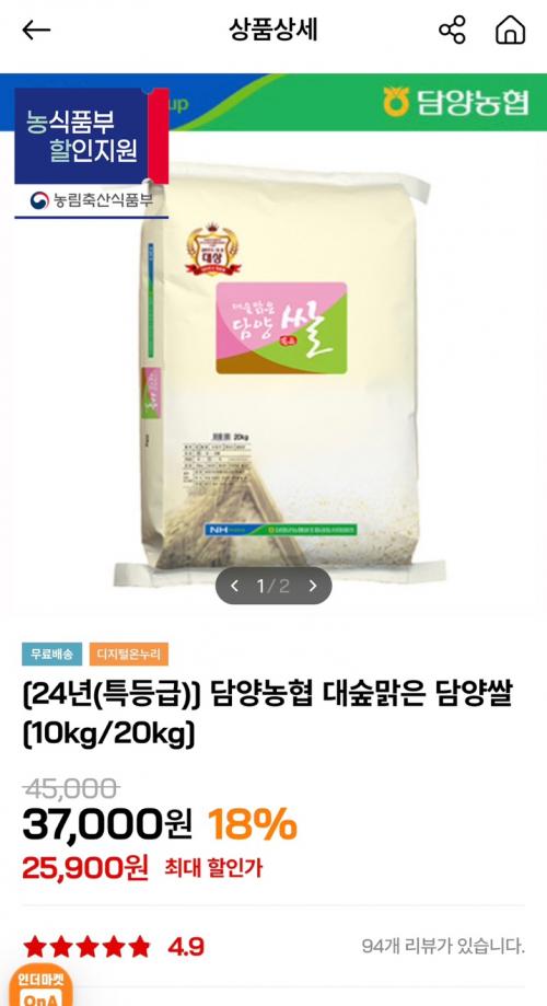 단일품종 특등급 품질좋고 밥하면 맛있어요