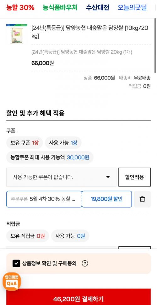 최대 3만원 선착순 농할쿠폰 30% 적용하면 가격 나옵니다