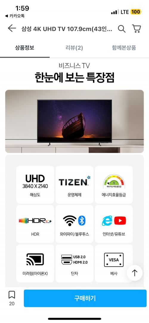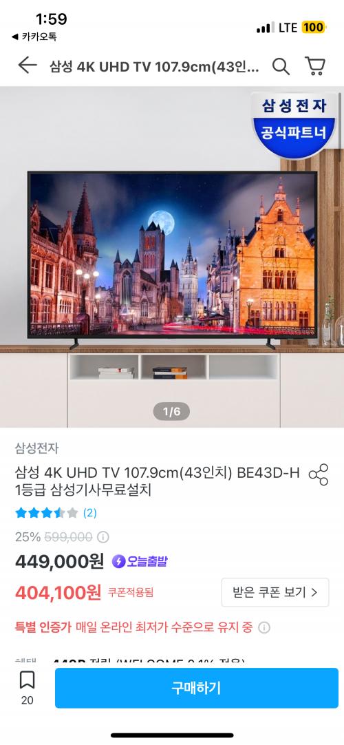 [오늘의집] 삼성 사이니지 비즈니스 TV 43인치(355,813원/무료)