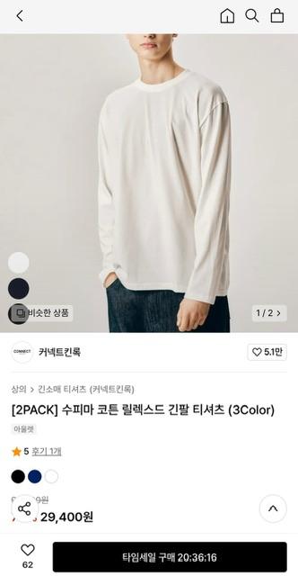 [무신사] 커넥트킨록 수피마 코튼 릴렉스드 긴팔 티셔츠 (29,400원/무료) > 국내핫딜