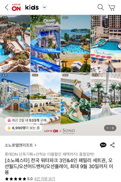 [롯데온] 소노호텔앤리조트 워터파크 3인 세트권 (89,300원/무료)