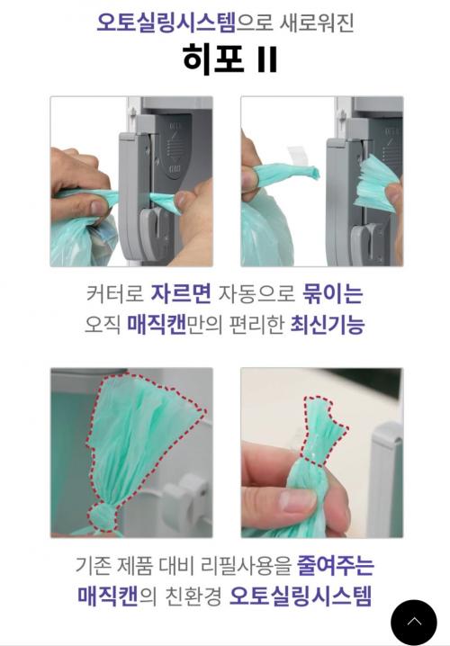 히포2는 오토실링이라고 쓰레기봉투 버릴때 자동으로 묶어주는 기능 사용하면 손도 깔끔하게 버릴 수 있습니다.