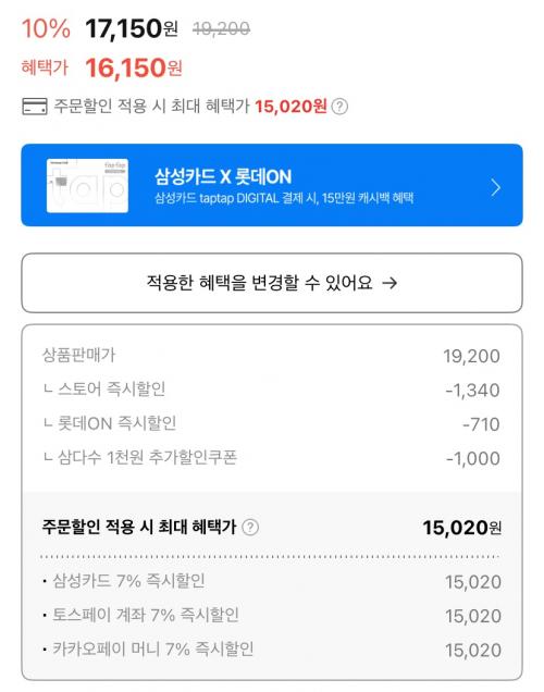 1천원 중복쿠폰 적용시 15,020원 입니다.
