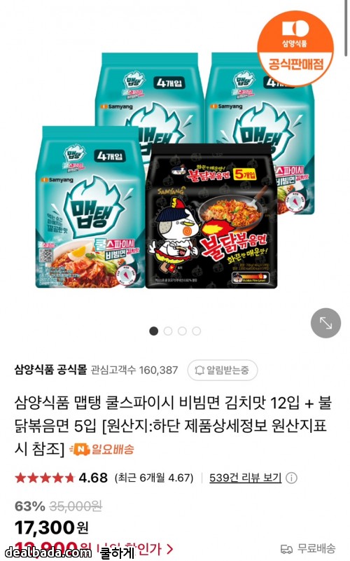 불닭말고 까르보불닭이나 삼양라면도 있어요