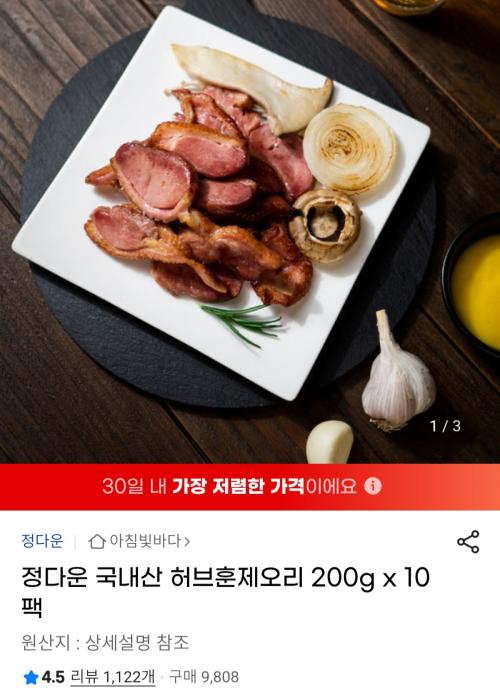 [지마켓] 정다운 국내산 허브 훈제오리 200g 10팩 (29,780원 / 무배) > 국내핫딜