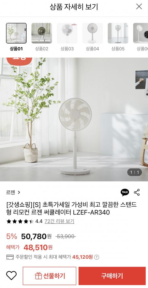 [롯데온] 깔끔한 스탠드형 리모컨 르젠 써큘레이터 LZEF-AR340 (45,120원/무료)