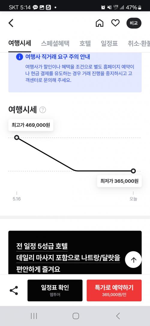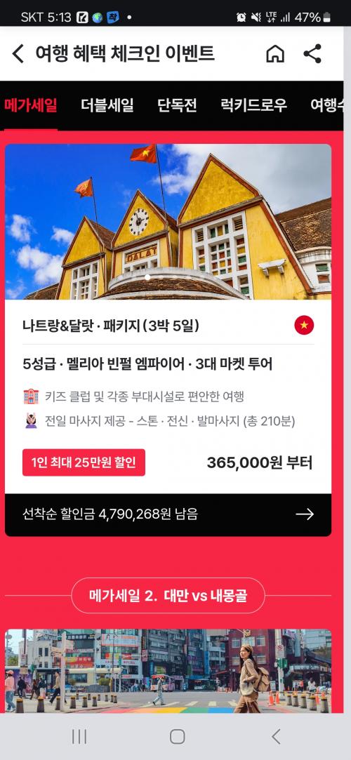 호텔은 5성급 멜리아 빈펄 나트랑 엠파이어 호텔 1박, 멀펄 달랏 2박이네요.
