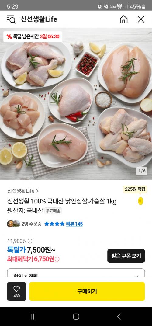 [톡딜] 국내산 닭가슴살 1kg+1kg 10,260원 무배 > 국내핫딜