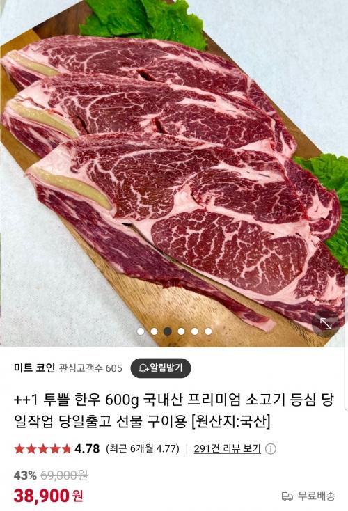 600g 할인가 38,900원 입니다. 100g당 6480원정도 나오네요.