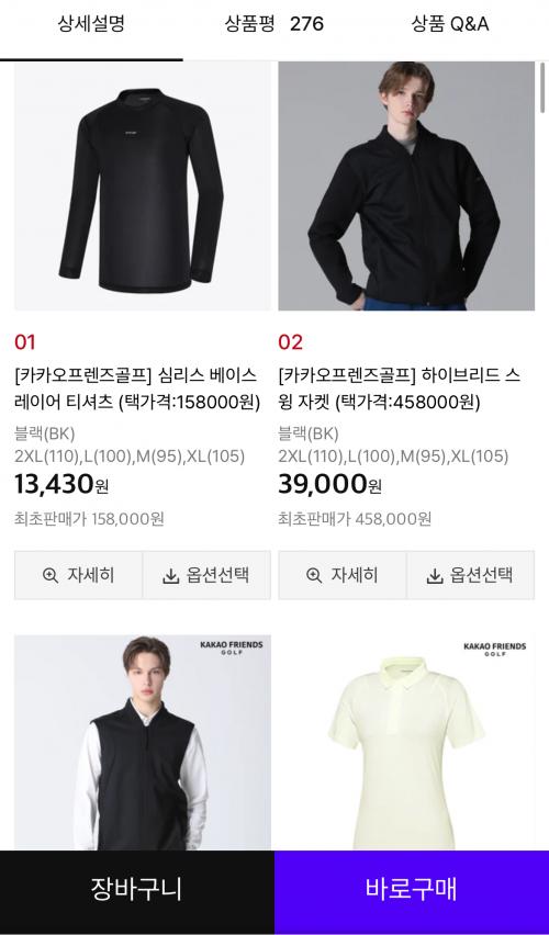 [패션플러스] 카카오프렌즈골프 봄/여름 티셔츠자켓 등 (13,430원/무료) > 국내핫딜