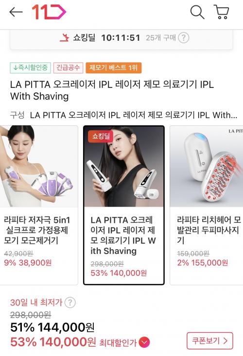 [11번가] 라피타 오크레이저 IPL 제모 의료기기 (144,000원/무료) > 국내핫딜