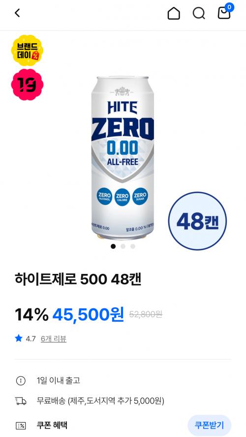 [진로토닉] 하이트제로 500ml 48캔 (30,940원/무배) > 국내핫딜