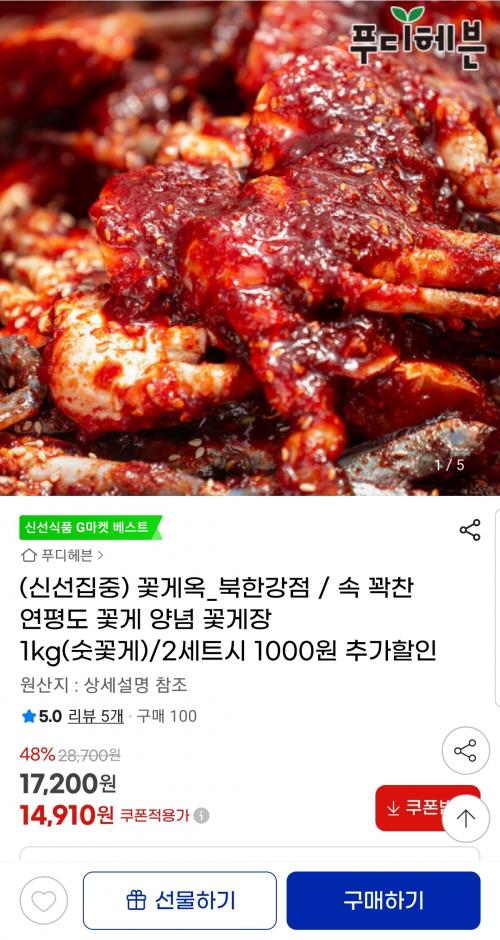 국내산 꽃게장이 키로당 1.4만원대면 가격 저렴한편 같네요