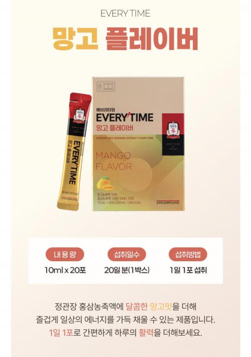 [네이버] 정관장 에브리타임 망고 플레이버 10ml 20포 (29,400원/무료) > 국내핫딜
