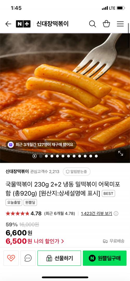 떡볶이 좋아하는 분들 신대장 국물떡볶이 할인해요
