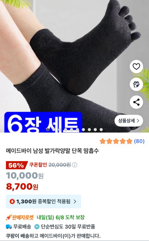 [쿠팡] 메이드바이 남성 발가락양말 6장세트(8,700원/무배) > 국내핫딜