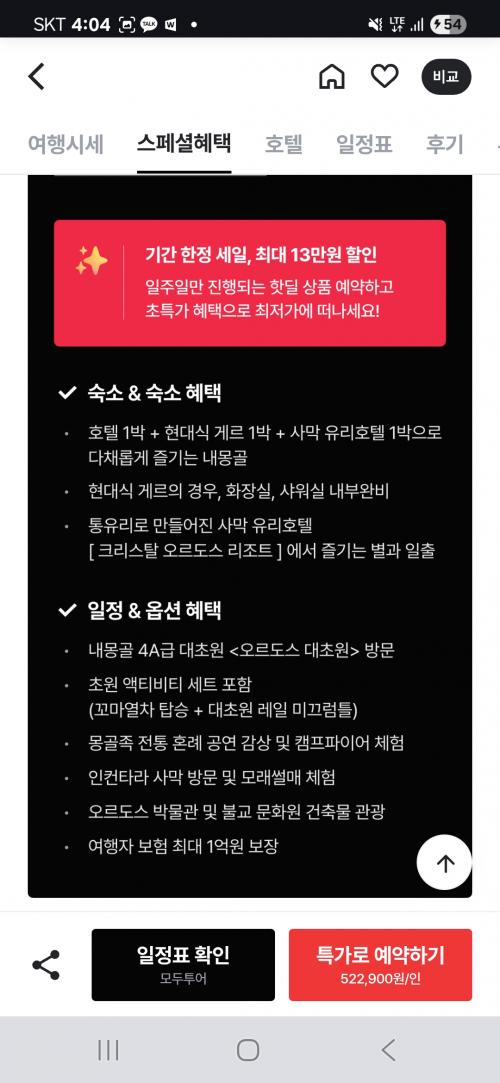 몽골이랑 체험가능한 관광이 크게 차이없고