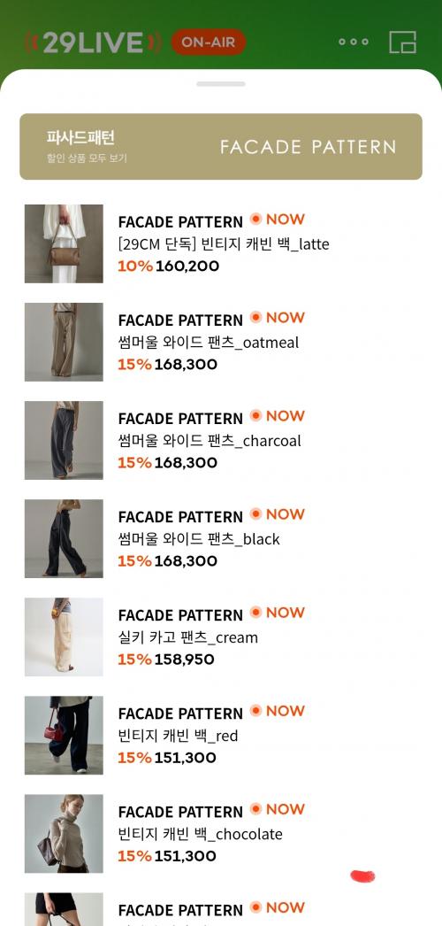 [29CM] 파사드패턴 라이브 할인~15% > 국내핫딜